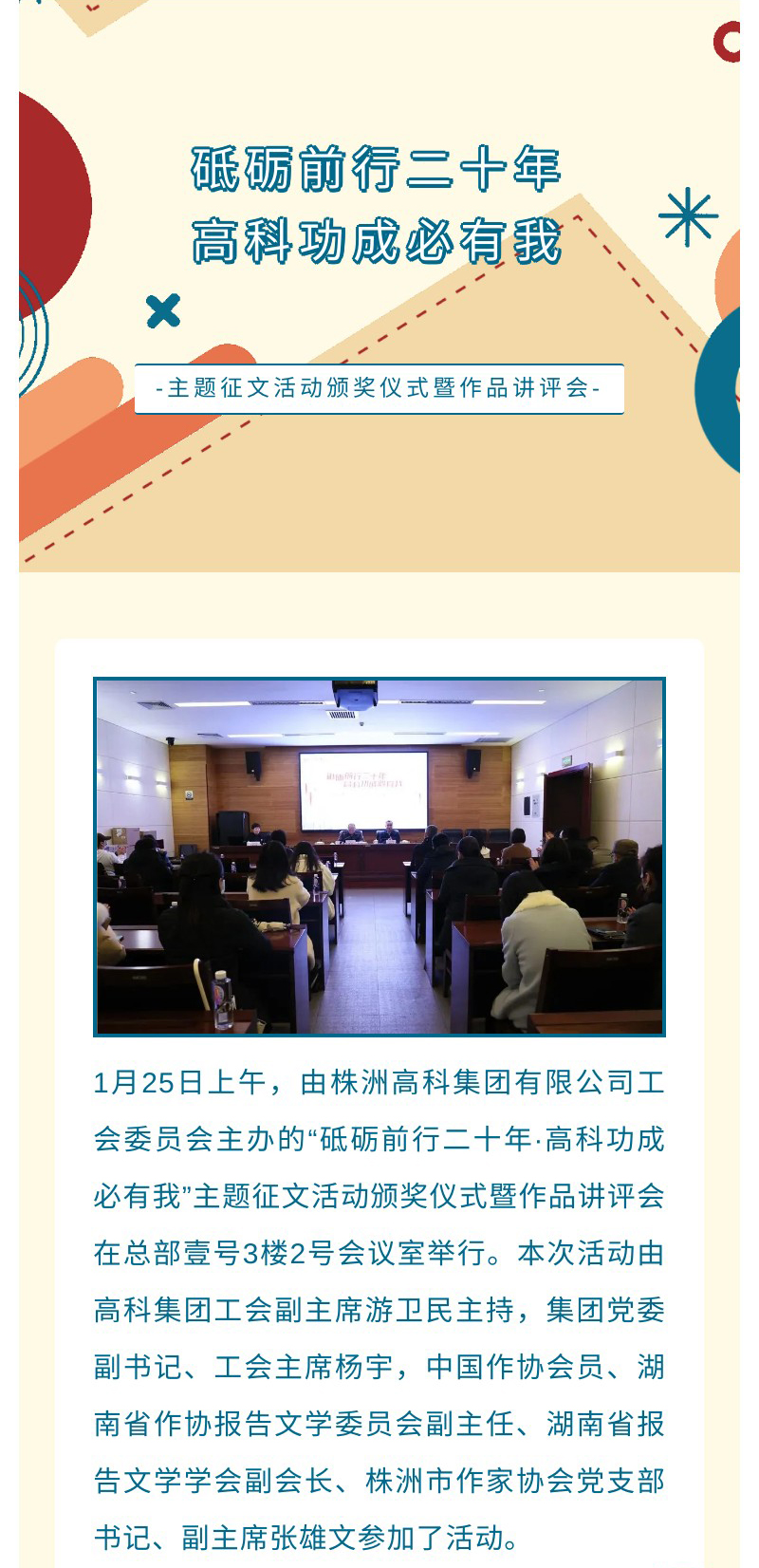 高科集團(tuán)舉行“砥礪前行二十年·高科功成必有我”主題征文活動(dòng)頒獎(jiǎng)儀式